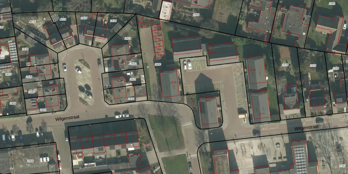 Wilgenstraat 35 is gelegen op kadastraal perceel ODB02B2600. Deze kadastrale aanduiding is uniek en wordt gebruikt door het Kadaster om eigendomsrechten en andere zakelijke rechten vast te leggen. Het perceel maakt onderdeel uit van de kadastrale gemeente Oudenbosch.