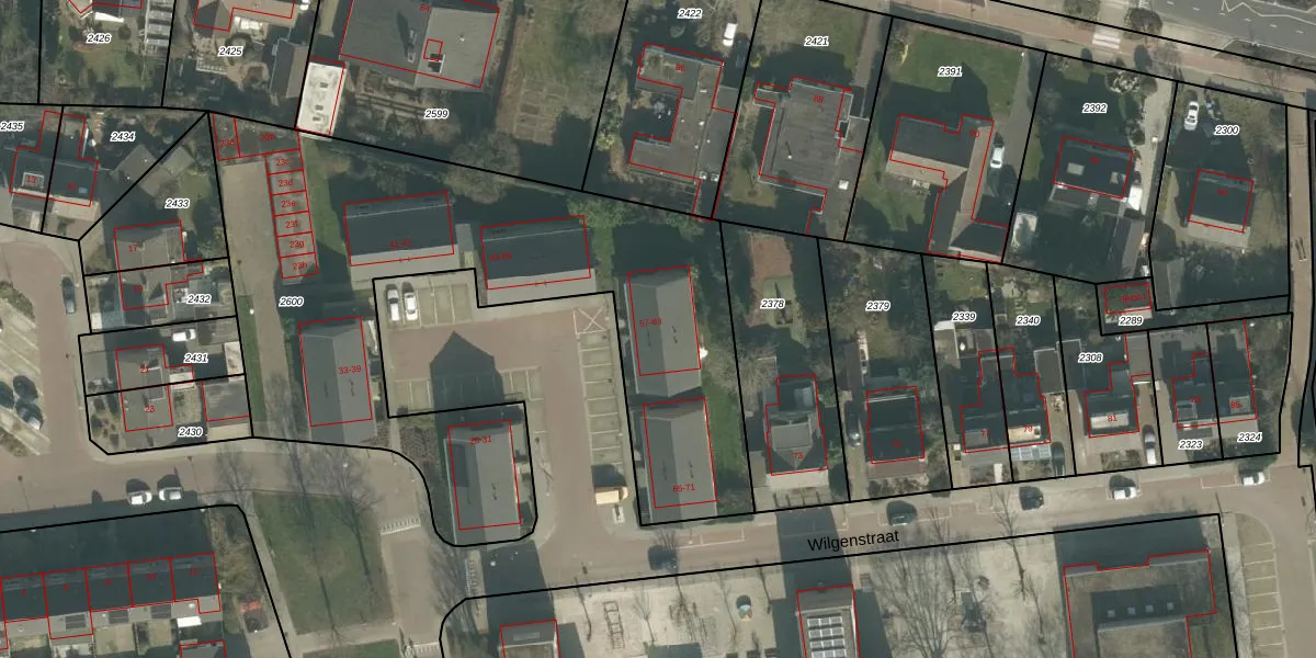 Wilgenstraat 61 is gelegen op kadastraal perceel ODB02B2600. Deze kadastrale aanduiding is uniek en wordt gebruikt door het Kadaster om eigendomsrechten en andere zakelijke rechten vast te leggen. Het perceel maakt onderdeel uit van de kadastrale gemeente Oudenbosch.