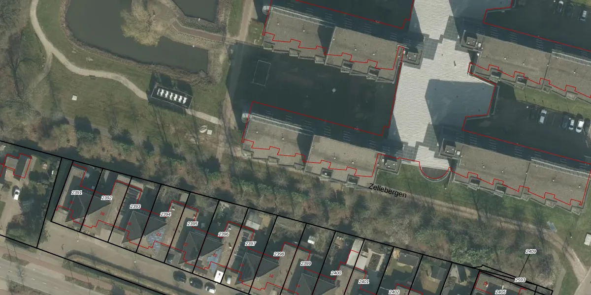 Het perceel waarop Zellebergen 155 staat heeft een oppervlakte van 2,8 ha. Dit is een zeer groot perceel. De perceeloppervlakte wordt geregistreerd door het Kadaster. Gedetailleerde informatie over de maten van dit perceel kunt u vinden in het rapport Kadastrale kaart met maatvoering van Zellebergen 155.