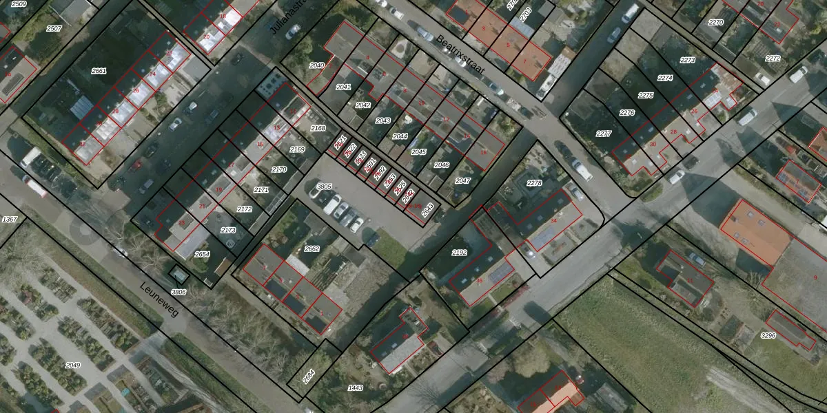 Het perceel waarop Beatrixstraat 16-i staat heeft een oppervlakte van 44 m². Dit is een klein perceel. De perceeloppervlakte wordt geregistreerd door het Kadaster. Gedetailleerde informatie over de maten van dit perceel kunt u vinden in het rapport Kadastrale kaart met maatvoering van Beatrixstraat 16-i.