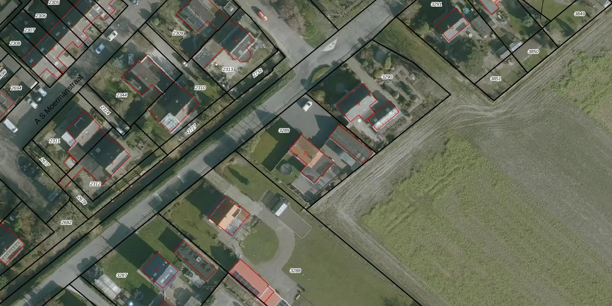 Gebruik de zoekbalk of klik op een perceel voor informatie over de adressen binnen dit perceel.