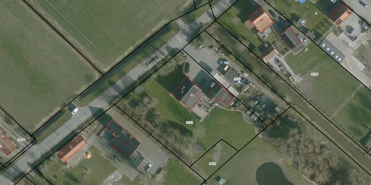 Het perceel waarop Eeweg 37 staat heeft een oppervlakte van 2590 m². Dit is een zeer groot perceel. De perceeloppervlakte wordt geregistreerd door het Kadaster. Gedetailleerde informatie over de maten van dit perceel kunt u vinden in het rapport Kadastrale kaart met maatvoering van Eeweg 37.