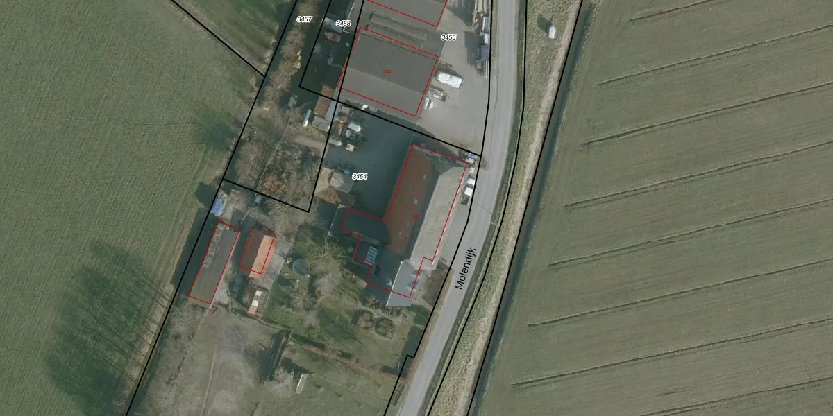 Het perceel waarop Molendijk 34 staat heeft een oppervlakte van 5160 m². Dit is een zeer groot perceel. De perceeloppervlakte wordt geregistreerd door het Kadaster. Gedetailleerde informatie over de maten van dit perceel kunt u vinden in het rapport Kadastrale kaart met maatvoering van Molendijk 34.
