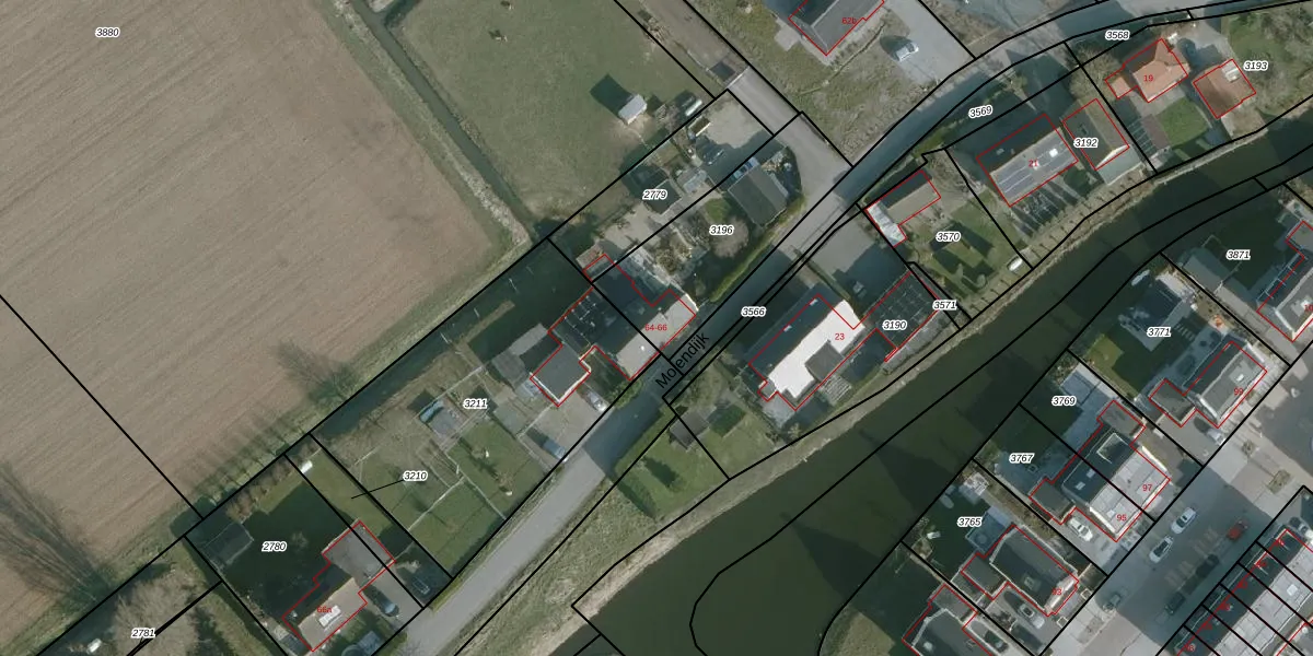 Het perceel waarop Molendijk 64 staat heeft een oppervlakte van 565 m². Dit is een groot perceel. De perceeloppervlakte wordt geregistreerd door het Kadaster. Gedetailleerde informatie over de maten van dit perceel kunt u vinden in het rapport Kadastrale kaart met maatvoering van Molendijk 64.