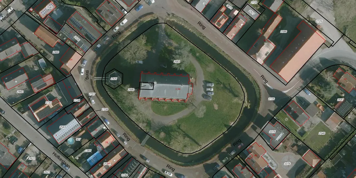 Het perceel waarop Ring 1 staat heeft een oppervlakte van 3630 m². Dit is een zeer groot perceel. De perceeloppervlakte wordt geregistreerd door het Kadaster. Gedetailleerde informatie over de maten van dit perceel kunt u vinden in het rapport Kadastrale kaart met maatvoering van Ring 1.