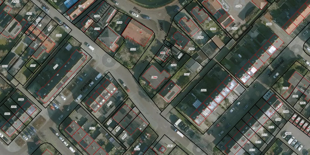 Gebruik de zoekbalk of klik op een perceel voor informatie over de adressen binnen dit perceel.