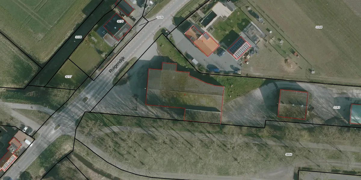 Ruigendijk 3 is gelegen op kadastraal perceel ODH01A3143. Deze kadastrale aanduiding is uniek en wordt gebruikt door het Kadaster om eigendomsrechten en andere zakelijke rechten vast te leggen. Het perceel maakt onderdeel uit van de kadastrale gemeente Oudenhoorn.