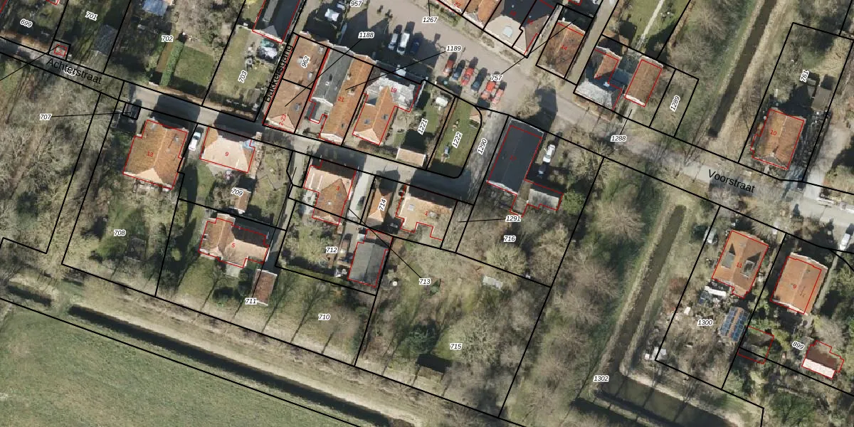 Het perceel waarop Achterstraat 1 staat heeft een oppervlakte van 242 m². Dit is een middelgroot perceel. De perceeloppervlakte wordt geregistreerd door het Kadaster. Gedetailleerde informatie over de maten van dit perceel kunt u vinden in het rapport Kadastrale kaart met maatvoering van Achterstraat 1.