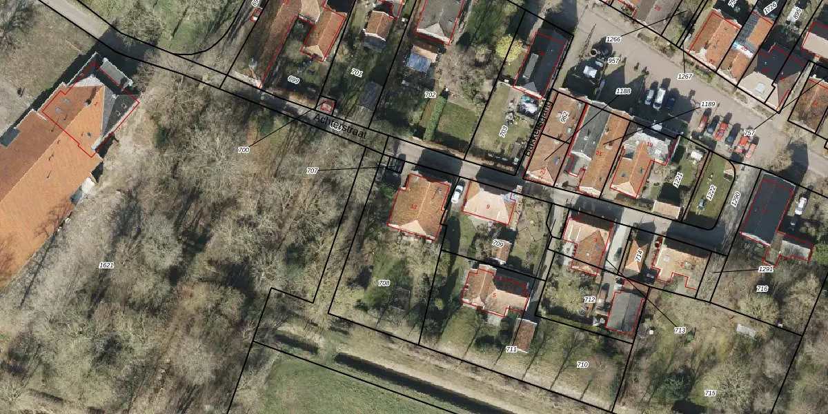 Het perceel waarop Achterstraat 13 staat heeft een oppervlakte van 840 m². Dit is een groot perceel. De perceeloppervlakte wordt geregistreerd door het Kadaster. Gedetailleerde informatie over de maten van dit perceel kunt u vinden in het rapport Kadastrale kaart met maatvoering van Achterstraat 13.