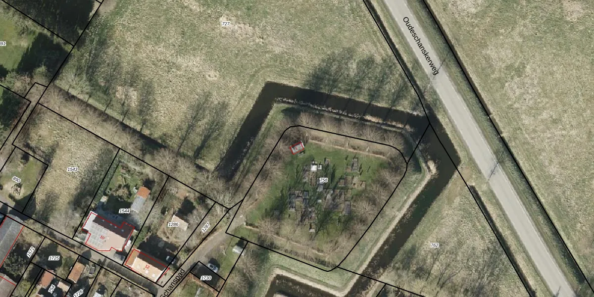 Het perceel waarop Schanspad 1 staat heeft een oppervlakte van 1825 m². Dit is een zeer groot perceel. De perceeloppervlakte wordt geregistreerd door het Kadaster. Gedetailleerde informatie over de maten van dit perceel kunt u vinden in het rapport Kadastrale kaart met maatvoering van Schanspad 1.