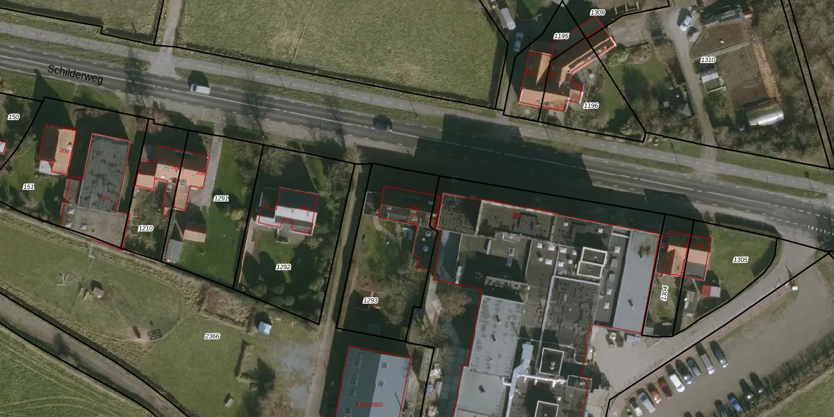 Het perceel waarop Schilderweg 210 staat heeft een oppervlakte van 711 m². Dit is een groot perceel. De perceeloppervlakte wordt geregistreerd door het Kadaster. Gedetailleerde informatie over de maten van dit perceel kunt u vinden in het rapport Kadastrale kaart met maatvoering van Schilderweg 210.