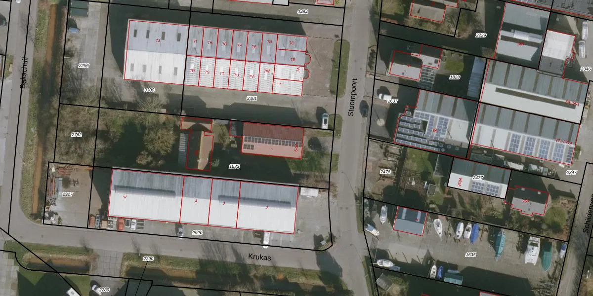 Het perceel waarop Stoompoort 5 staat heeft een oppervlakte van 1590 m². Dit is een zeer groot perceel. De perceeloppervlakte wordt geregistreerd door het Kadaster. Gedetailleerde informatie over de maten van dit perceel kunt u vinden in het rapport Kadastrale kaart met maatvoering van Stoompoort 5.