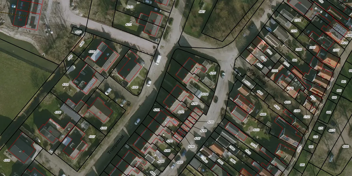 Trompstraat 5 is gelegen op kadastraal perceel TEL00D4293. Deze kadastrale aanduiding is uniek en wordt gebruikt door het Kadaster om eigendomsrechten en andere zakelijke rechten vast te leggen. Het perceel maakt onderdeel uit van de kadastrale gemeente Texel.