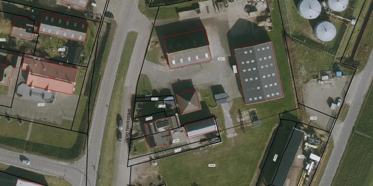 Het perceel waarop Van Neckstraat 7 staat heeft een oppervlakte van 4942 m². Dit is een zeer groot perceel. De perceeloppervlakte wordt geregistreerd door het Kadaster. Gedetailleerde informatie over de maten van dit perceel kunt u vinden in het rapport Kadastrale kaart met maatvoering van Van Neckstraat 7.