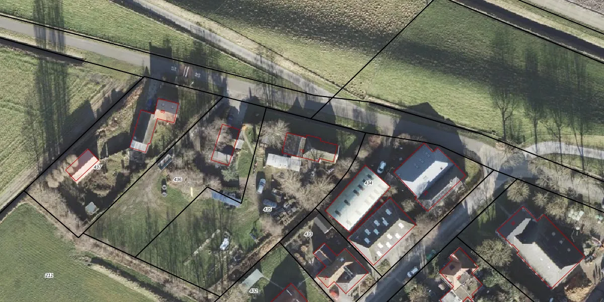Het adres is gelegen op perceel 435 in de sectie L en de kadastrale gemeente Uithuizermeeden. De kadastrale aanduiding is aldus UHZ02-L-435. De gemiddelde perceelgrootte in Uithuizermeeden is 1,6 ha. Dit perceel is kleiner: de perceeloppervlakte bedraagt 1979 m². De grootste perceeloppervlakte in de kadastrale gemeente is 2,15 km². De kleinste oppervlakte bedraagt 0 m². Op het perceel bevinden zich geen andere adressen. In de Basisregistratie Kadaster (BRK) werden de grenzen van het perceel geregistreerd op 30-01-2001.