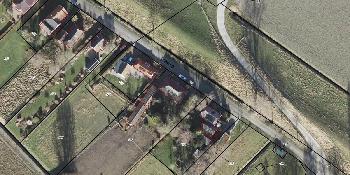 Het perceel waarop Dijkweg 9 staat heeft een oppervlakte van 2513 m². Dit is een zeer groot perceel. De perceeloppervlakte wordt geregistreerd door het Kadaster. Gedetailleerde informatie over de maten van dit perceel kunt u vinden in het rapport Kadastrale kaart met maatvoering van Dijkweg 9.