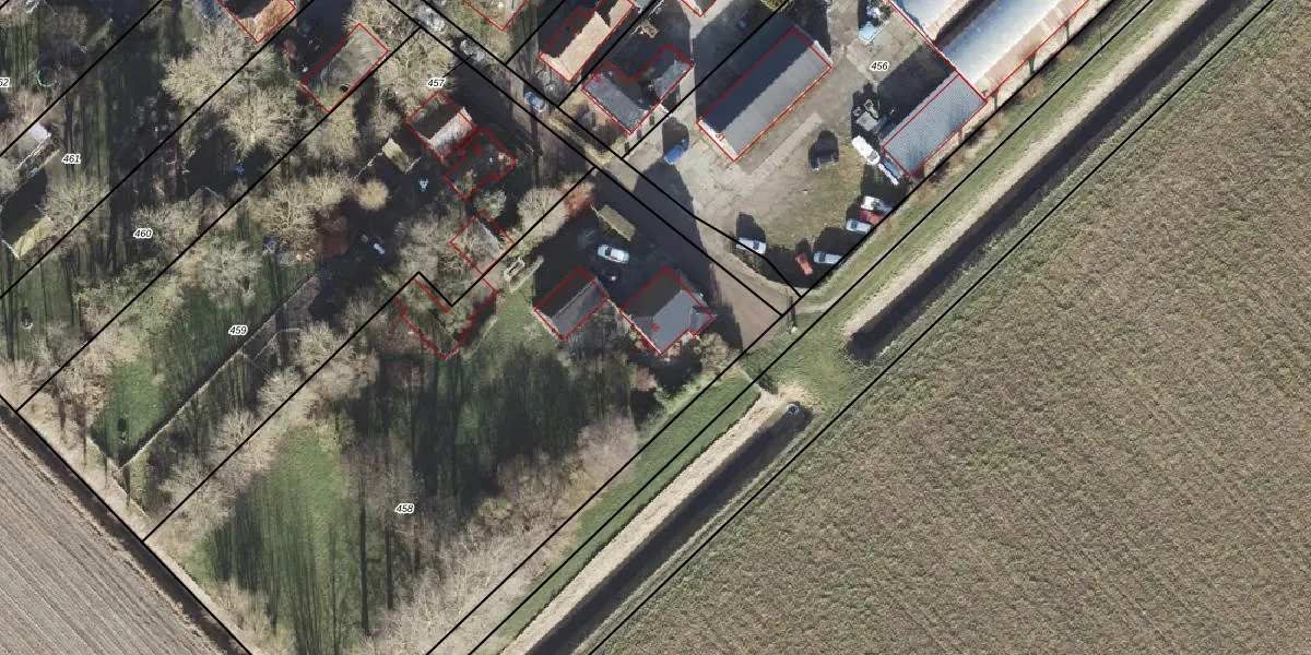 Het adres is gelegen op perceel 458 in de sectie L en de kadastrale gemeente Uithuizermeeden. De kadastrale aanduiding is aldus UHZ02-L-458. De gemiddelde perceelgrootte in Uithuizermeeden is 1,6 ha. Dit perceel is kleiner: de perceeloppervlakte bedraagt 3700 m². De grootste perceeloppervlakte in de kadastrale gemeente is 2,15 km². De kleinste oppervlakte bedraagt 0 m². Er zijn geen andere adressen aanwezig op het perceel. In de Basisregistratie Kadaster (BRK) werden de grenzen van het perceel geregistreerd op 30-01-2001.