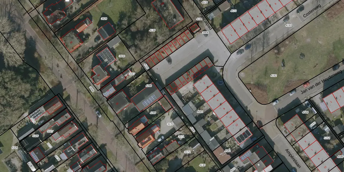 Het perceel waarop Ampèrelaan 2-M staat heeft een oppervlakte van 1399 m². Dit is een zeer groot perceel. De perceeloppervlakte wordt geregistreerd door het Kadaster. Gedetailleerde informatie over de maten van dit perceel kunt u vinden in het rapport Kadastrale kaart met maatvoering van Ampèrelaan 2-M.