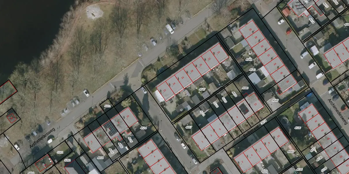 Archimedesweg 14 is gelegen op kadastraal perceel KPE00B4547. Deze kadastrale aanduiding is uniek en wordt gebruikt door het Kadaster om eigendomsrechten en andere zakelijke rechten vast te leggen. Het perceel maakt onderdeel uit van de kadastrale gemeente Knijpe.