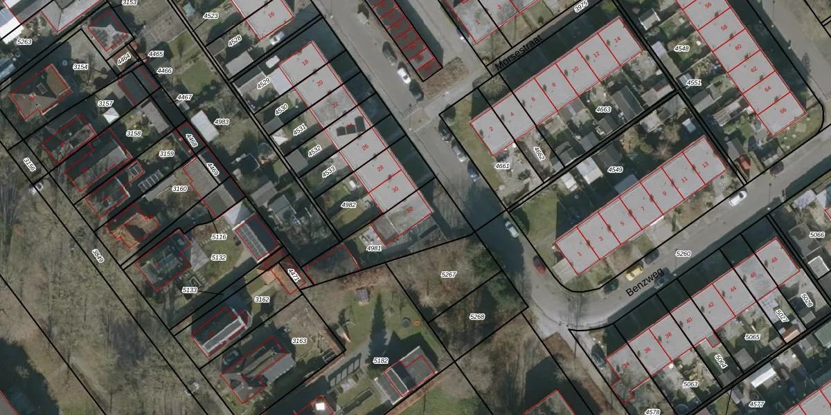 Het perceel waarop Benzweg 32 staat heeft een oppervlakte van 422 m². Dit is een groot perceel. De perceeloppervlakte wordt geregistreerd door het Kadaster. Gedetailleerde informatie over de maten van dit perceel kunt u vinden in het rapport Kadastrale kaart met maatvoering van Benzweg 32.