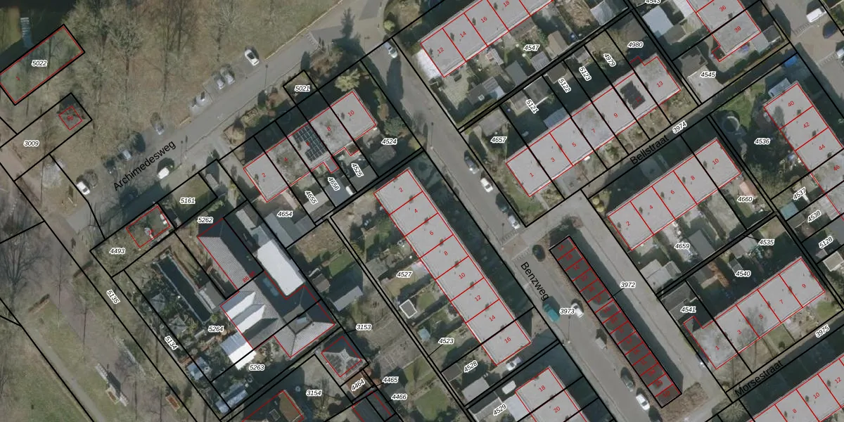 Het perceel waarop Benzweg 4 staat heeft een oppervlakte van 1223 m². Dit is een zeer groot perceel. De perceeloppervlakte wordt geregistreerd door het Kadaster. Gedetailleerde informatie over de maten van dit perceel kunt u vinden in het rapport Kadastrale kaart met maatvoering van Benzweg 4.