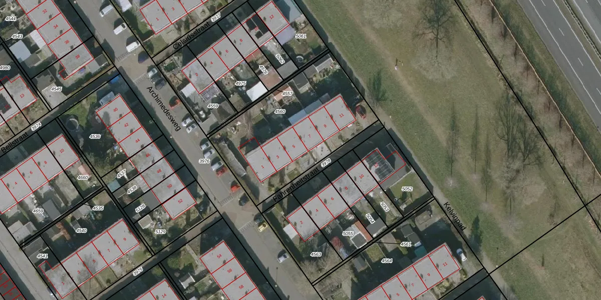 Fahrenheitstraat 5 is gelegen op kadastraal perceel KPE00B4560. Deze kadastrale aanduiding is uniek en wordt gebruikt door het Kadaster om eigendomsrechten en andere zakelijke rechten vast te leggen. Het perceel maakt onderdeel uit van de kadastrale gemeente Knijpe.