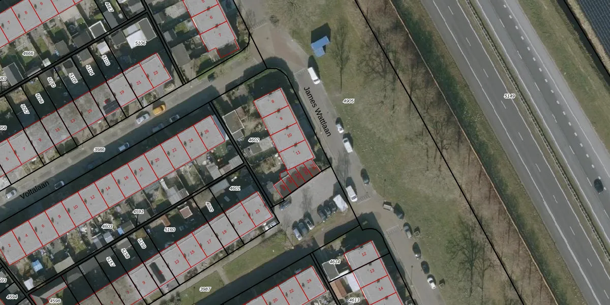 James Wattlaan 11 is gelegen op kadastraal perceel KPE00B4602. Deze kadastrale aanduiding is uniek en wordt gebruikt door het Kadaster om eigendomsrechten en andere zakelijke rechten vast te leggen. Het perceel maakt onderdeel uit van de kadastrale gemeente Knijpe.