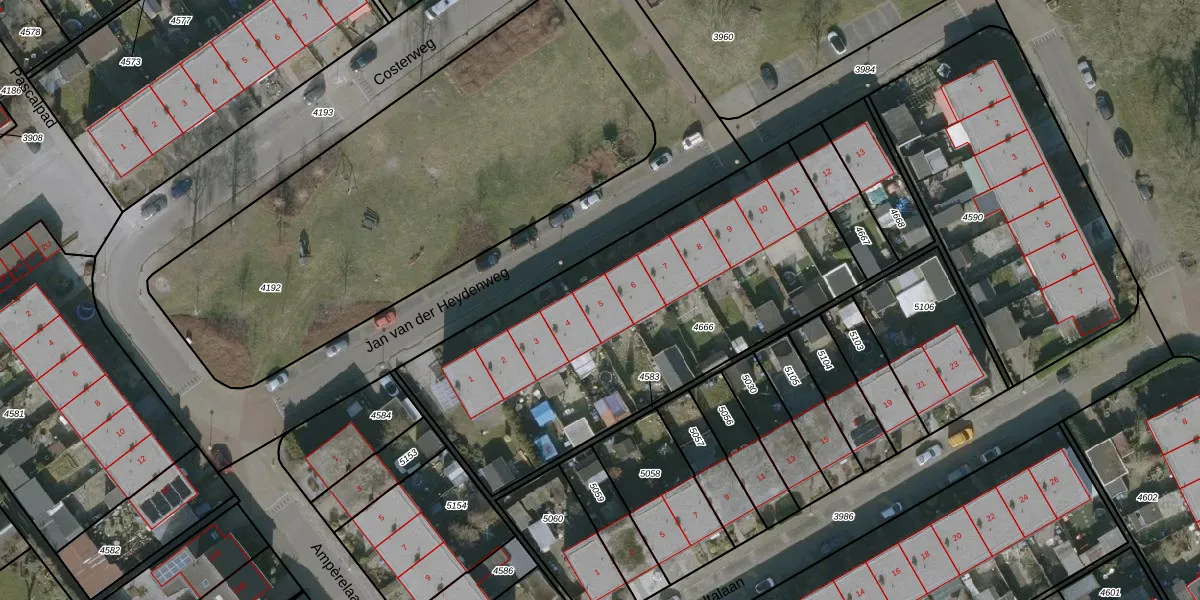 Jan van der Heydenweg 5 is gelegen op kadastraal perceel KPE00B4666. Deze kadastrale aanduiding is uniek en wordt gebruikt door het Kadaster om eigendomsrechten en andere zakelijke rechten vast te leggen. Het perceel maakt onderdeel uit van de kadastrale gemeente Knijpe.