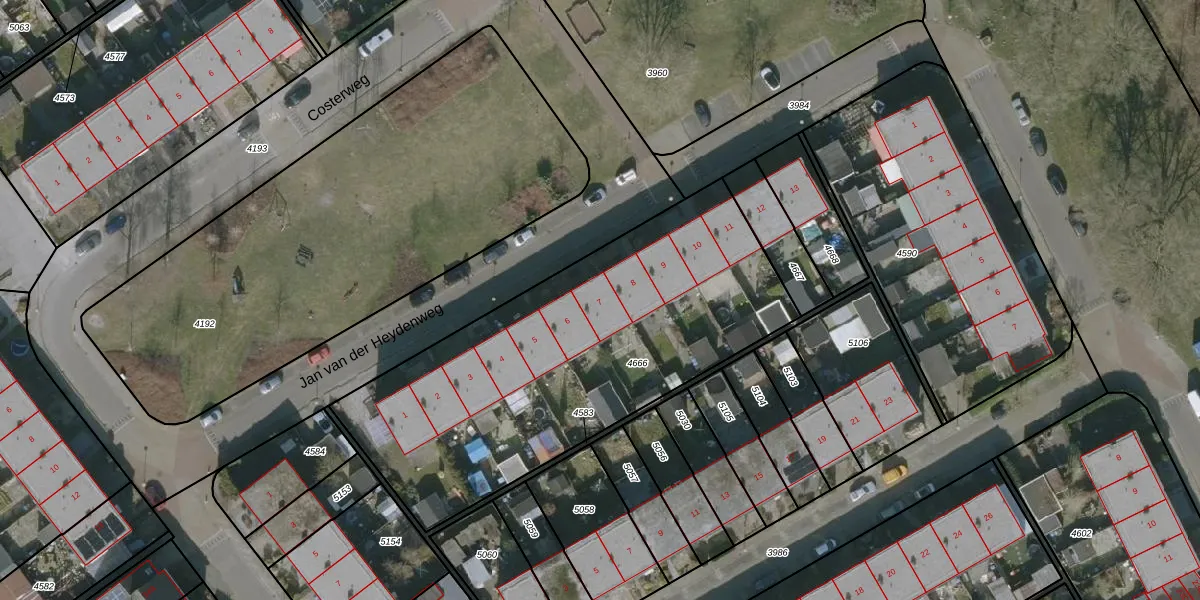 Jan van der Heydenweg 7 is gelegen op kadastraal perceel KPE00B4666. Deze kadastrale aanduiding is uniek en wordt gebruikt door het Kadaster om eigendomsrechten en andere zakelijke rechten vast te leggen. Het perceel maakt onderdeel uit van de kadastrale gemeente Knijpe.