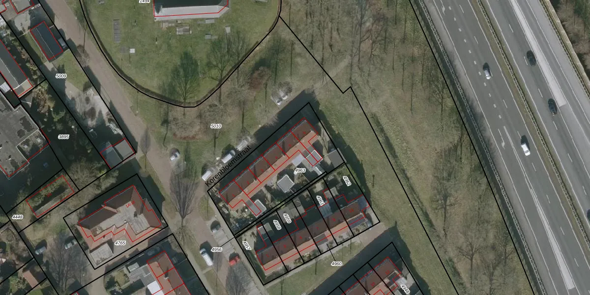 Korenbloemstraat 5 is gelegen op kadastraal perceel KPE00B4963. Deze kadastrale aanduiding is uniek en wordt gebruikt door het Kadaster om eigendomsrechten en andere zakelijke rechten vast te leggen. Het perceel maakt onderdeel uit van de kadastrale gemeente Knijpe.