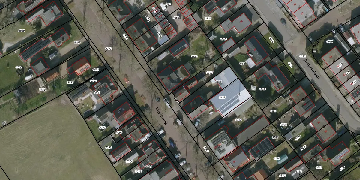Het perceel waarop Marktweg 28 staat heeft een oppervlakte van 245 m². Dit is een middelgroot perceel. De perceeloppervlakte wordt geregistreerd door het Kadaster. Gedetailleerde informatie over de maten van dit perceel kunt u vinden in het rapport Kadastrale kaart met maatvoering van Marktweg 28.