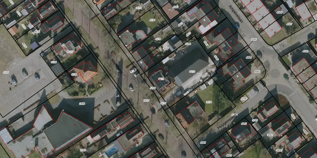 Marktweg 46 is gelegen op kadastraal perceel KPE00B5271. Deze kadastrale aanduiding is uniek en wordt gebruikt door het Kadaster om eigendomsrechten en andere zakelijke rechten vast te leggen. Het perceel maakt onderdeel uit van de kadastrale gemeente Knijpe.