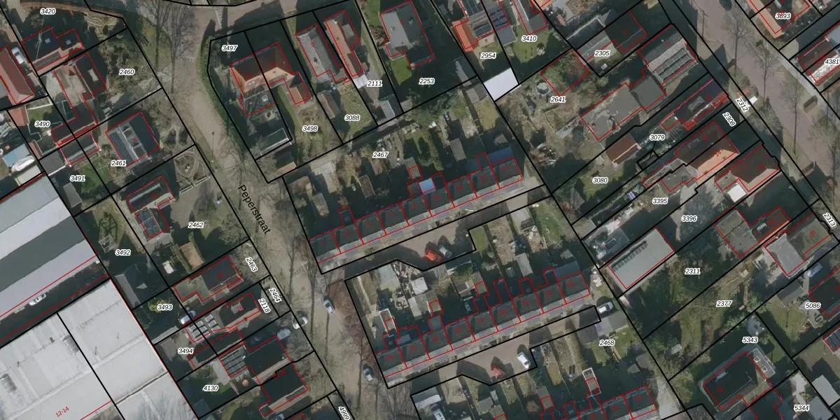 Peperstraat 9 is gelegen op kadastraal perceel KPE00C2467. Deze kadastrale aanduiding is uniek en wordt gebruikt door het Kadaster om eigendomsrechten en andere zakelijke rechten vast te leggen. Het perceel maakt onderdeel uit van de kadastrale gemeente Knijpe.