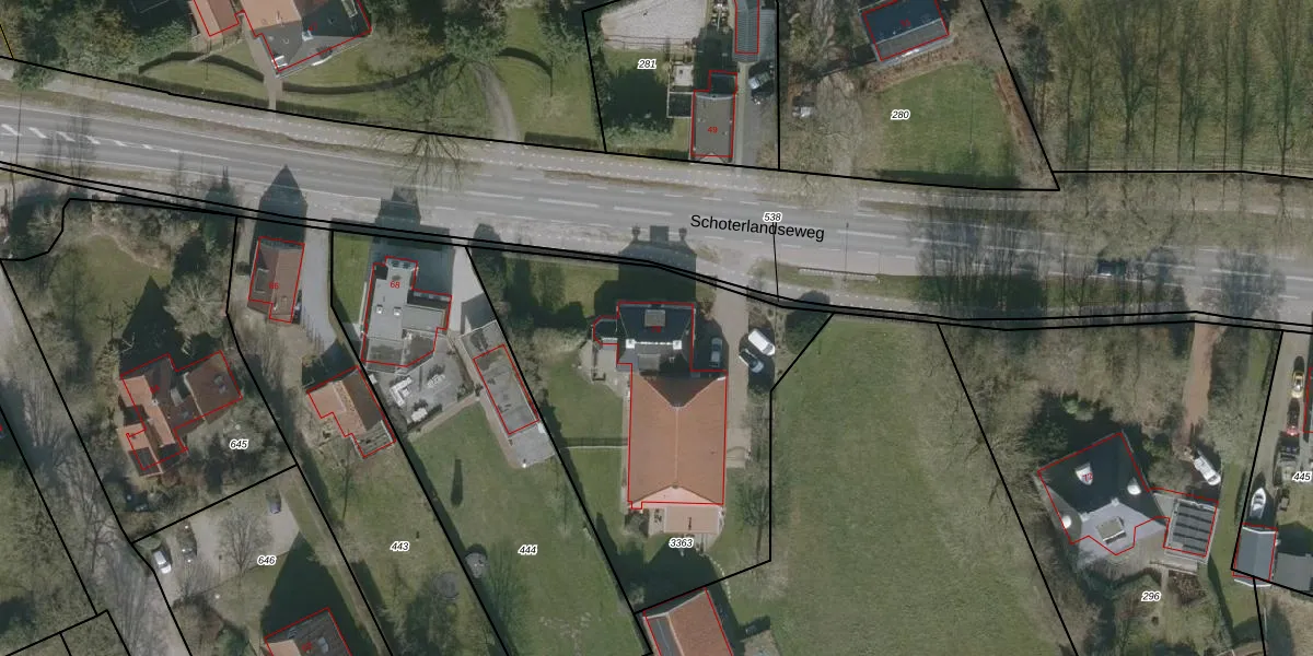 Schoterlandseweg 70 is gelegen op kadastraal perceel KPE00E3363. Deze kadastrale aanduiding is uniek en wordt gebruikt door het Kadaster om eigendomsrechten en andere zakelijke rechten vast te leggen. Het perceel maakt onderdeel uit van de kadastrale gemeente Knijpe.
