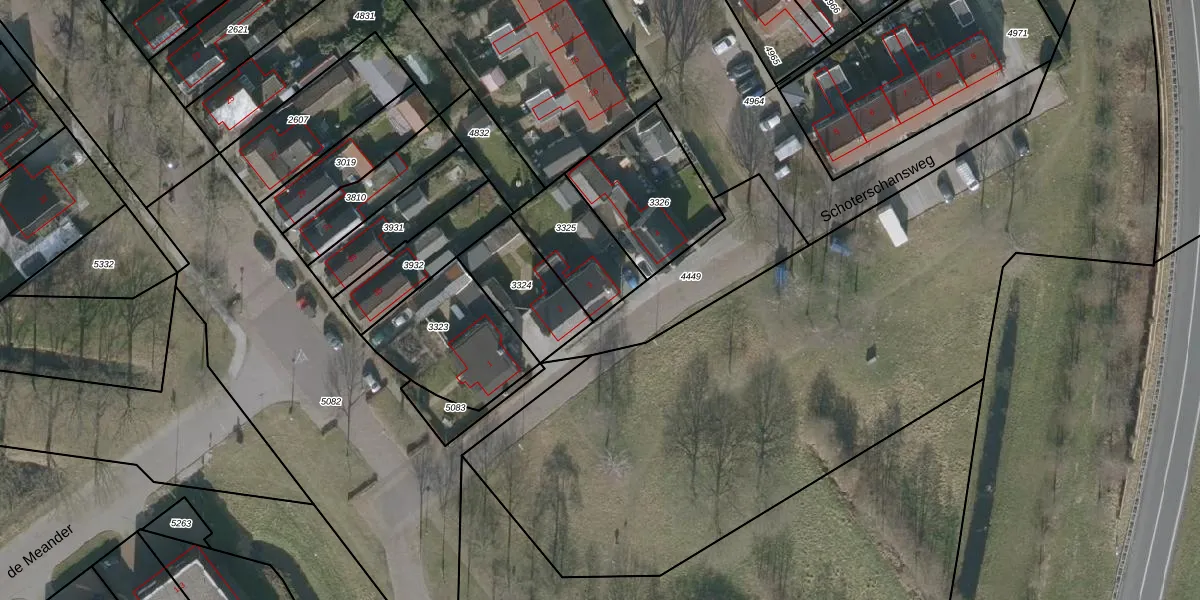 Schoterschansweg 3 is gelegen op kadastraal perceel KPE00B3325. Deze kadastrale aanduiding is uniek en wordt gebruikt door het Kadaster om eigendomsrechten en andere zakelijke rechten vast te leggen. Het perceel maakt onderdeel uit van de kadastrale gemeente Knijpe.