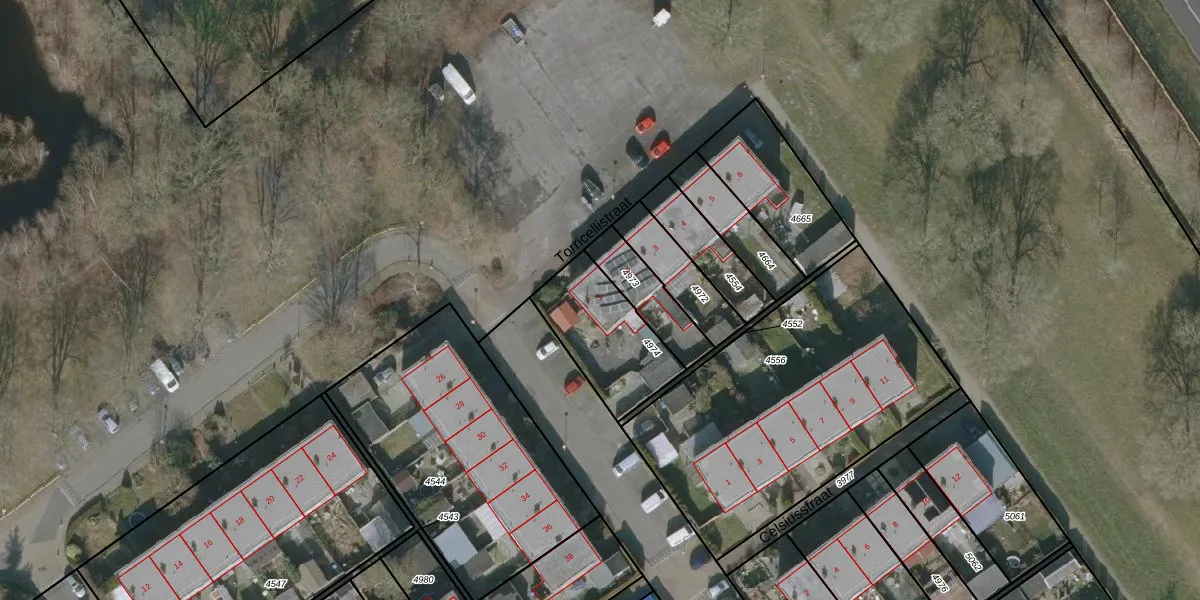 Torricellistraat 1 is gelegen op kadastraal perceel KPE00B4974. Deze kadastrale aanduiding is uniek en wordt gebruikt door het Kadaster om eigendomsrechten en andere zakelijke rechten vast te leggen. Het perceel maakt onderdeel uit van de kadastrale gemeente Knijpe.
