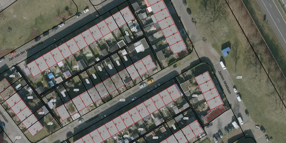 Het perceel waarop Voltalaan 21 staat heeft een oppervlakte van 426 m². Dit is een groot perceel. De perceeloppervlakte wordt geregistreerd door het Kadaster. Gedetailleerde informatie over de maten van dit perceel kunt u vinden in het rapport Kadastrale kaart met maatvoering van Voltalaan 21.
