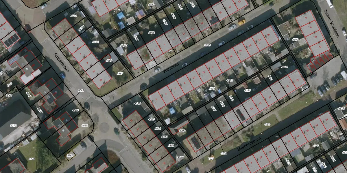 Het perceel waarop Voltalaan 6 staat heeft een oppervlakte van 2000 m². Dit is een zeer groot perceel. De perceeloppervlakte wordt geregistreerd door het Kadaster. Gedetailleerde informatie over de maten van dit perceel kunt u vinden in het rapport Kadastrale kaart met maatvoering van Voltalaan 6.