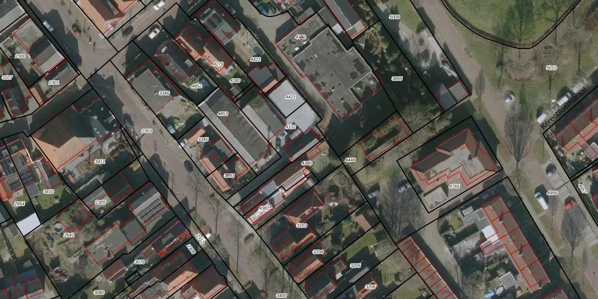 Gebruik de zoekbalk of klik op een perceel voor informatie over de adressen binnen dit perceel.