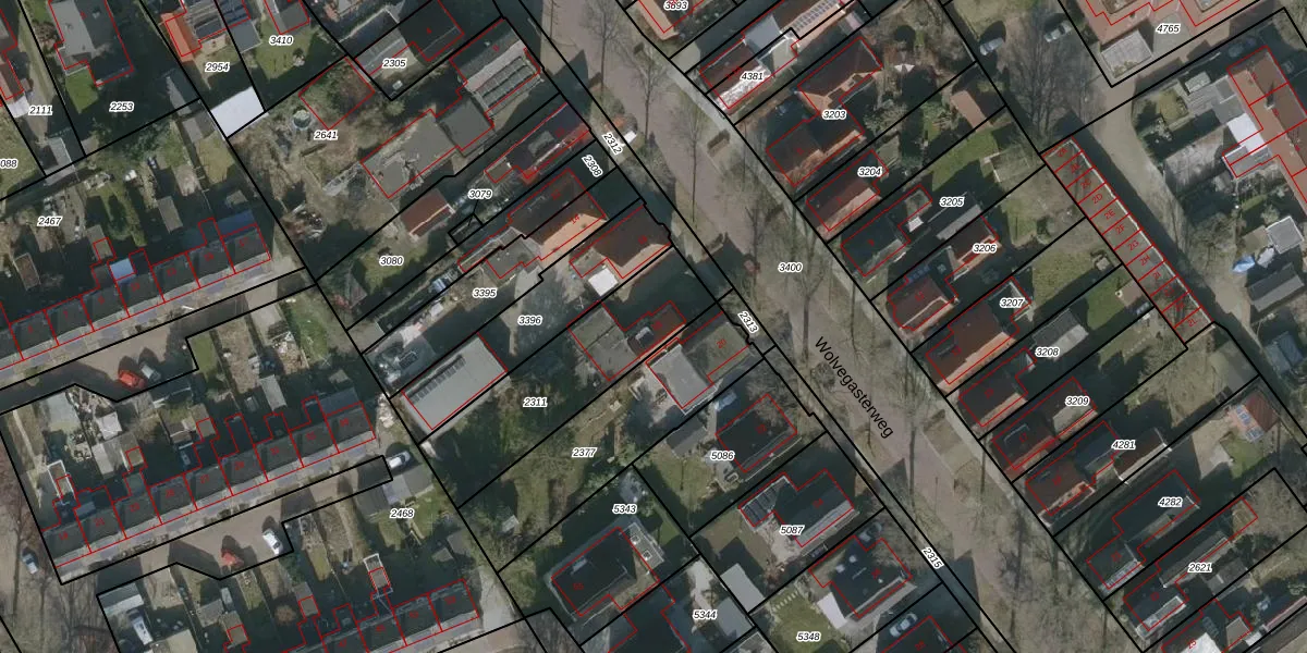 Gebruik de zoekbalk of klik op een perceel voor informatie over de adressen binnen dit perceel.