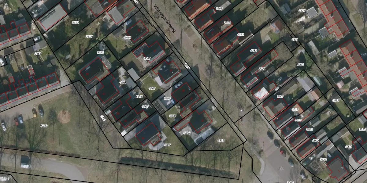 Gebruik de zoekbalk of klik op een perceel voor informatie over de adressen binnen dit perceel.