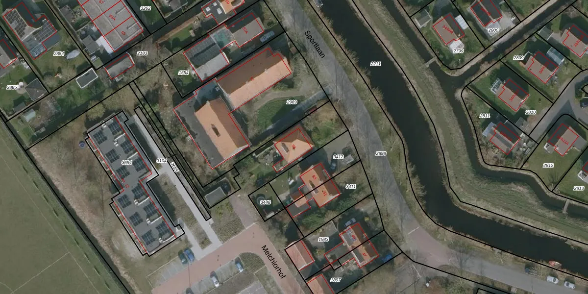 Het perceel waarop Sportlaan 55 staat heeft een oppervlakte van 1,3 ha. Dit is een zeer groot perceel. De perceeloppervlakte wordt geregistreerd door het Kadaster. Gedetailleerde informatie over de maten van dit perceel kunt u vinden in het rapport Kadastrale kaart met maatvoering van Sportlaan 55.