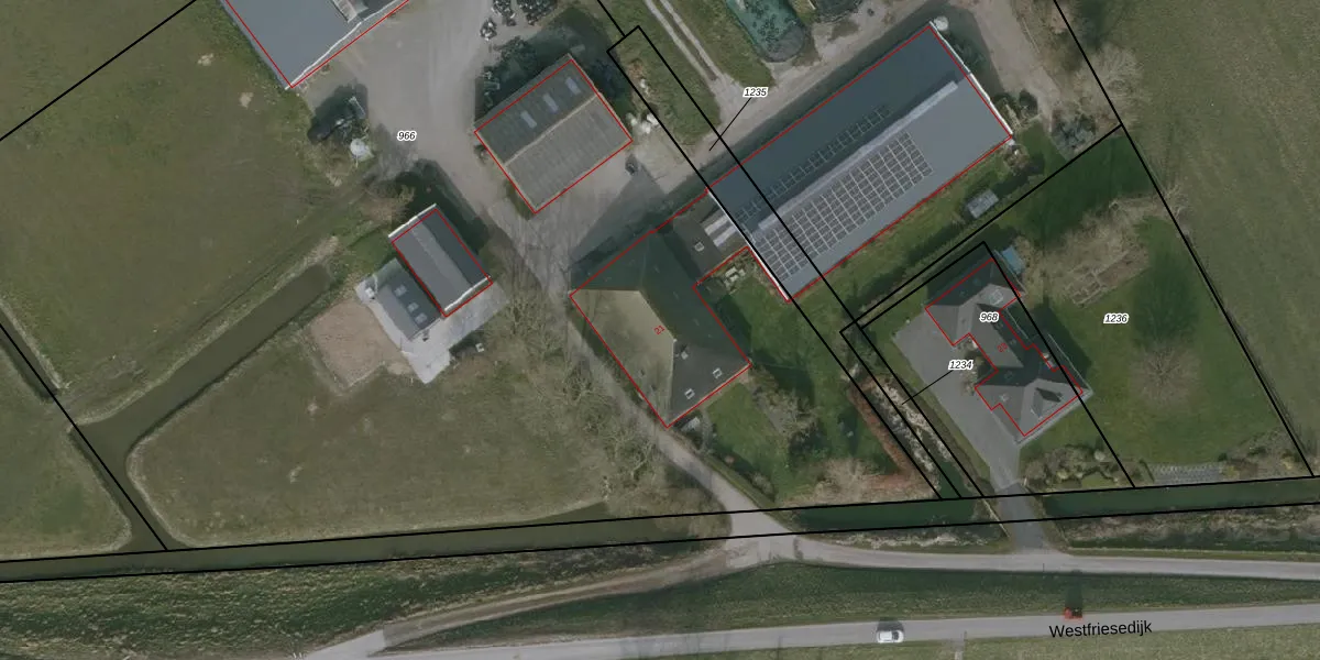 Het perceel waarop Westfriesedijk 21 staat heeft een oppervlakte van 9660 m². Dit is een zeer groot perceel. De perceeloppervlakte wordt geregistreerd door het Kadaster. Gedetailleerde informatie over de maten van dit perceel kunt u vinden in het rapport Kadastrale kaart met maatvoering van Westfriesedijk 21.