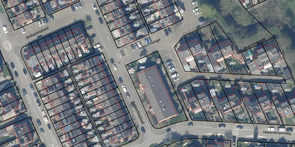 Ambachtsdreef 32 is gelegen op kadastraal perceel ODW00B4777. Deze kadastrale aanduiding is uniek en wordt gebruikt door het Kadaster om eigendomsrechten en andere zakelijke rechten vast te leggen. Het perceel maakt onderdeel uit van de kadastrale gemeente Oudewater.