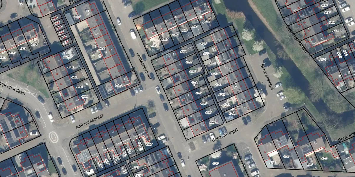 Ambachtsdreef 42 is gelegen op kadastraal perceel ODW00B4764. Deze kadastrale aanduiding is uniek en wordt gebruikt door het Kadaster om eigendomsrechten en andere zakelijke rechten vast te leggen. Het perceel maakt onderdeel uit van de kadastrale gemeente Oudewater.