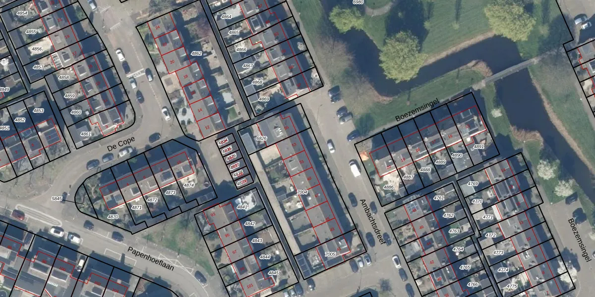 Het perceel waarop Ambachtsdreef 53 staat heeft een oppervlakte van 854 m². Dit is een groot perceel. De perceeloppervlakte wordt geregistreerd door het Kadaster. Gedetailleerde informatie over de maten van dit perceel kunt u vinden in het rapport Kadastrale kaart met maatvoering van Ambachtsdreef 53.