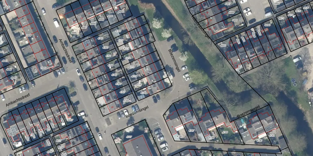 Gebruik de zoekbalk of klik op een perceel voor informatie over de adressen binnen dit perceel.