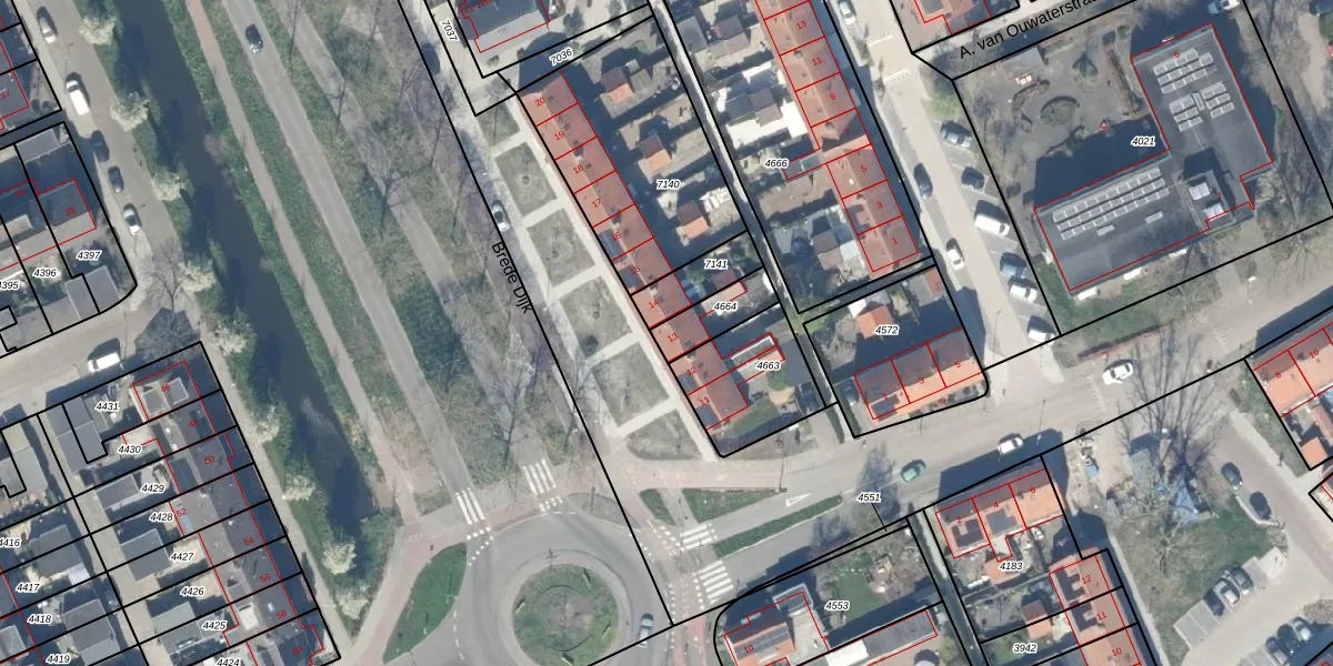 Brede Dijk 13 is gelegen op kadastraal perceel ODW00B4664. Deze kadastrale aanduiding is uniek en wordt gebruikt door het Kadaster om eigendomsrechten en andere zakelijke rechten vast te leggen. Het perceel maakt onderdeel uit van de kadastrale gemeente Oudewater.
