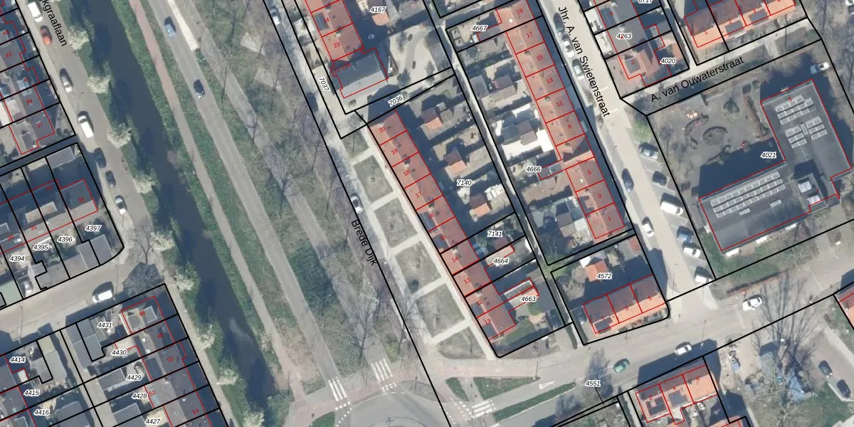Brede Dijk 16 is gelegen op kadastraal perceel ODW00B7140. Deze kadastrale aanduiding is uniek en wordt gebruikt door het Kadaster om eigendomsrechten en andere zakelijke rechten vast te leggen. Het perceel maakt onderdeel uit van de kadastrale gemeente Oudewater.