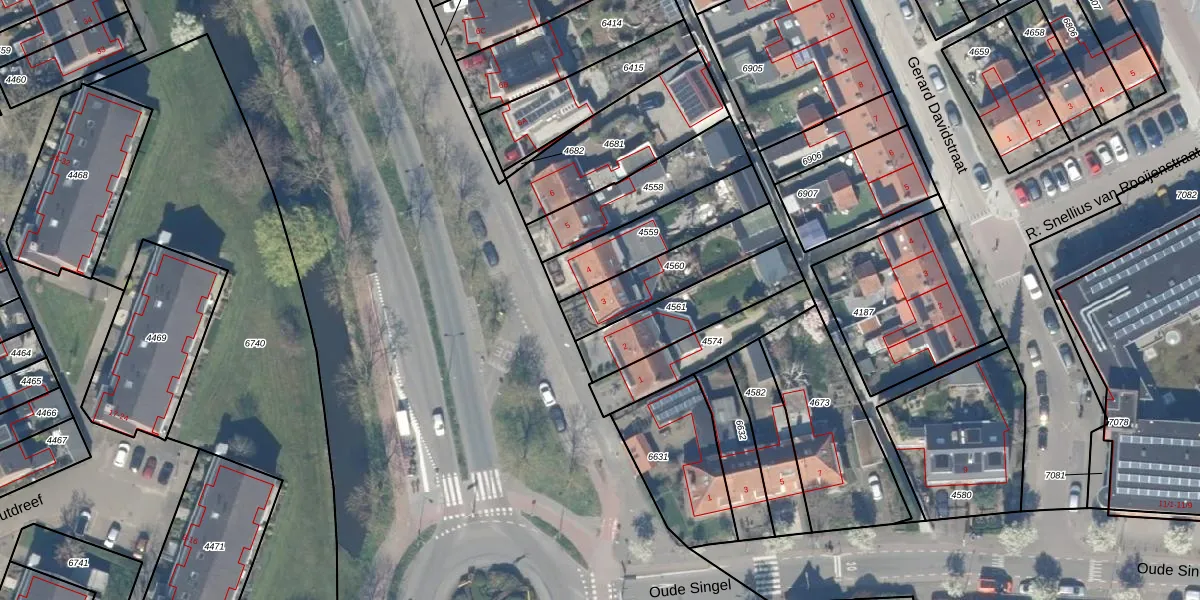 Gebruik de zoekbalk of klik op een perceel voor informatie over de adressen binnen dit perceel.